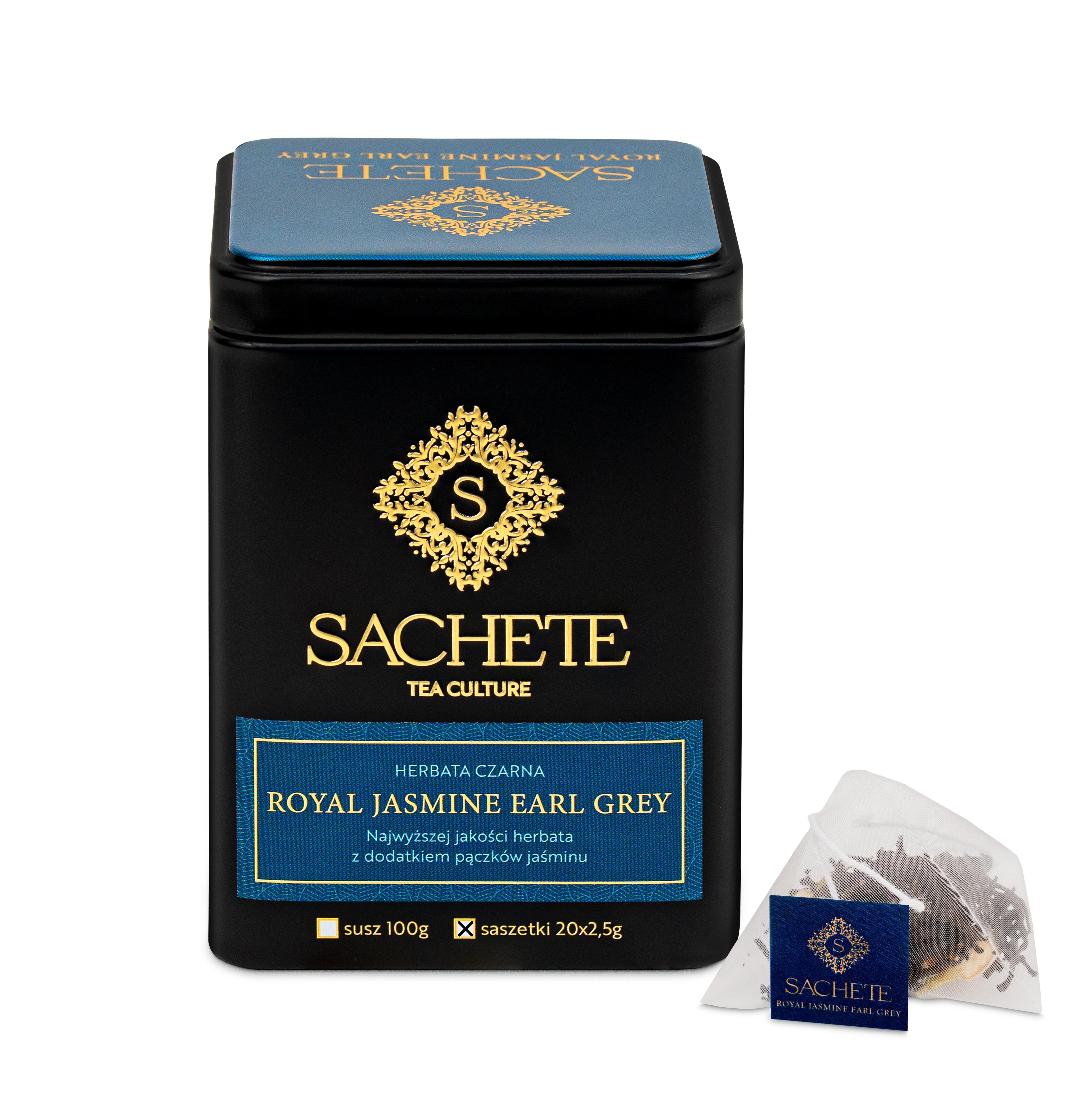 Royal Jasmine Earl Grey to wyjątkowa interpretacja jednej z najbardziej rozpoznawalnych herbat świata. W kolekcji Sachete znalazła się, ponieważ łączy w sobie szlachetną moc czarnej herbaty z subtelną elegancją jaśminu — duetem, który tworzy napar o głębi i delikatności jednocześnie.