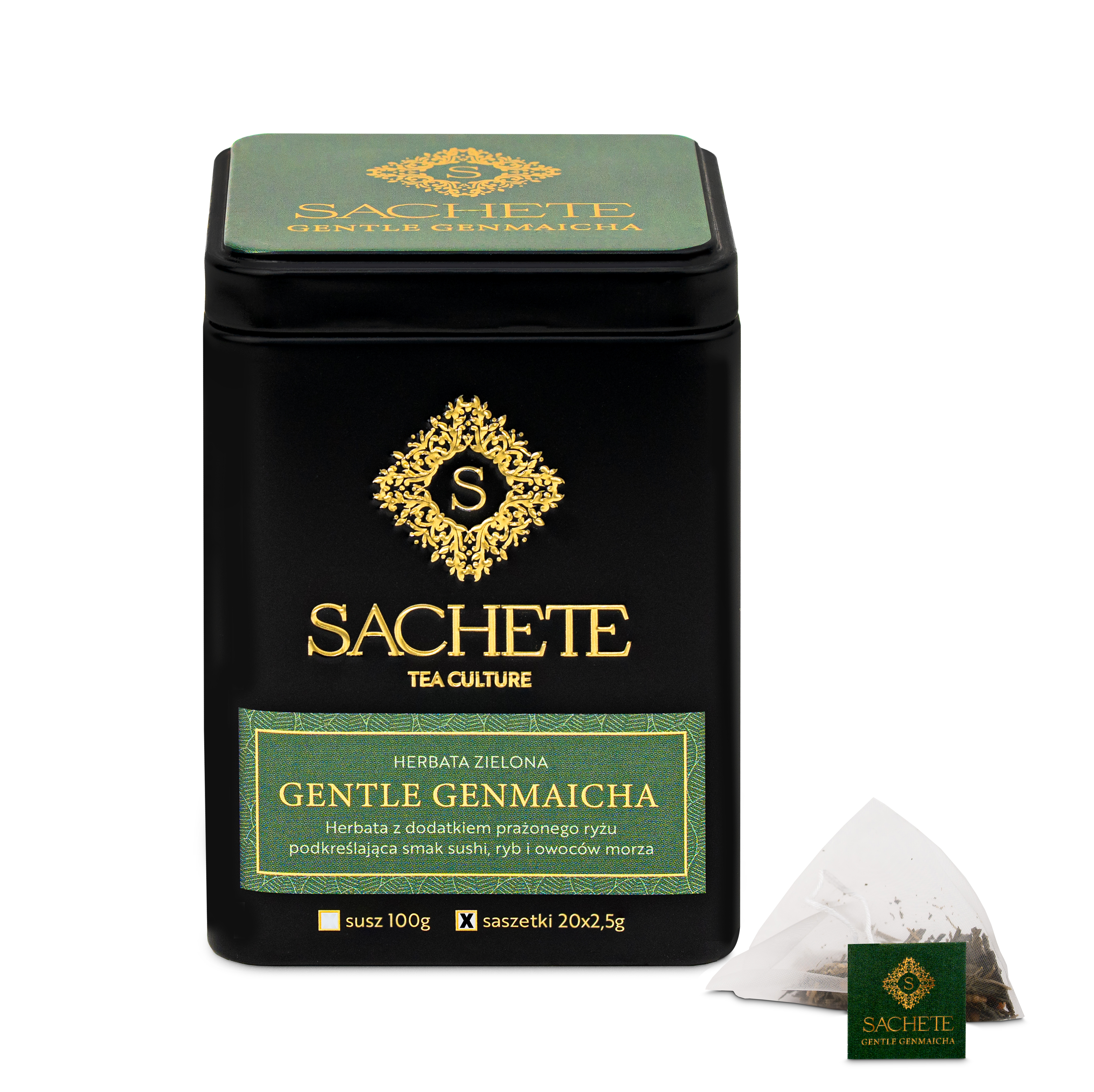 Gentle Genmaicha Sachete to wyjątkowa herbata inspirowana japońską tradycją, w której spotykają się dwa światy – świeża, roślinna zieloność Senchy i głęboki, orzechowo-słodki aromat prażonego, pełnoziarnistego ryżu.